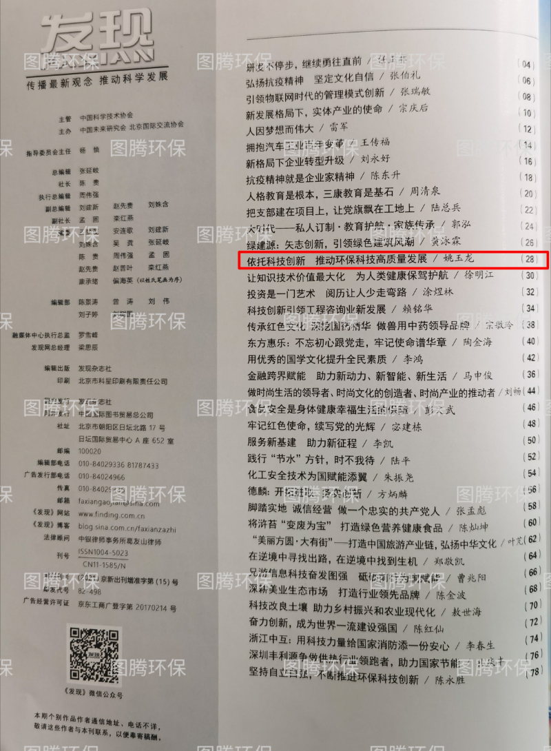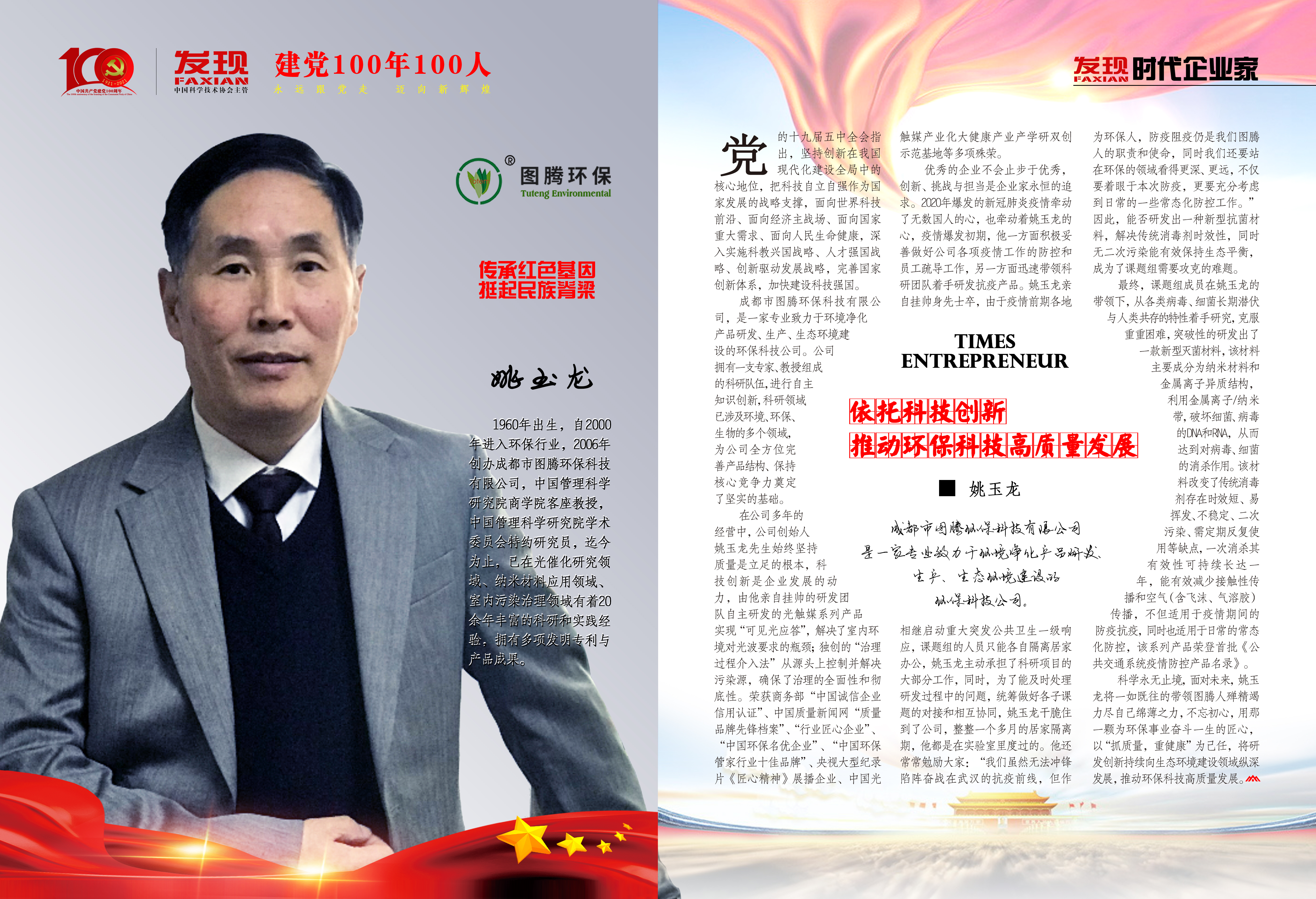 本次入选是对姚玉龙先生莫大的殊荣,也是对我们图腾环保、洁蕴环保公司巨大的鞭策,路漫漫其修远兮,吾将上下而求索。新时代新征程,展望未来,公司全体同仁将在姚玉龙先生的带领下继续在科技创新推动环保健康事业发展的道路上披荆斩棘,尽自己绵力!