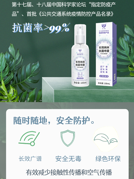 喷涂一次,持续有效,成分安全无毒,无二次污染,不会造成过度消毒引起的刺激、过敏等问题,更不会对粘膜、呼吸道造成损伤,也不会对老人小孩造成任何健康负担,是您更值得选择的居家消毒好帮手。