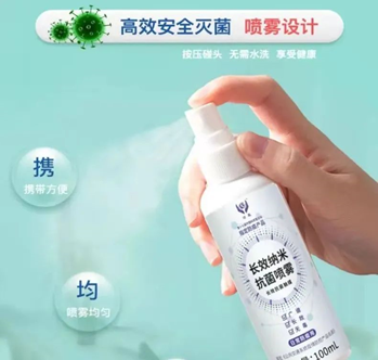 2. 外出可以携带长效抗菌触媒100ml装,对公共座椅、把手、电梯按钮、卫生间门把手等消毒即可。
