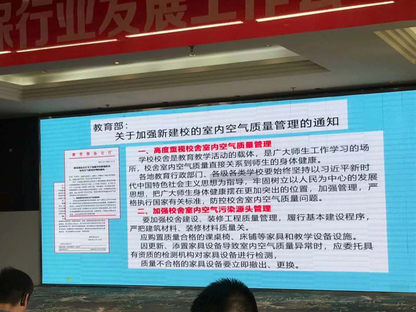 他提到,此次会议贯彻党中央关于新冠肺炎疫情的防控工作的指导精神,国家建筑工程室内环境检测中心副主任李云龙对8月1日即将施行的GB 50325-2020《民用建筑工程室内环境污染控制标准》做了深刻讲解和剖析,对比2013版,新标准将室内空气中污染物种类、对室内空气中污染物浓度标准、对室内污染物浓度检测点数都进行调整。此外,会上对生物污染进行了全面化、系统化的培训,重点加强对环境质量管理体系认证,建立更加规范的环境管理体系,特别是对学校幼儿园空气质量管理的的重视,对幼儿园、学校教室、学生宿舍等装饰装修提出了更加严格的污染控制要求。