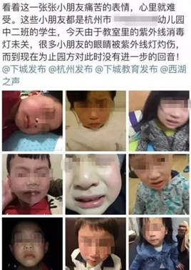 南京市妇幼保健院儿保所分管托幼机构的负责人李希翎表示,不建议幼儿园安装固定的紫外线消毒灯。像我国学校教室中安装的直射式紫外线灯消毒的方法,既缺乏科学依据也被证明是无效的,而且是违反我国相关法规的;同时,还因为操作不当,造成了意外伤害。所以要讨论的不是教室紫外线灯是否是误开,而是应不应该安装的问题,如果要对学生的学习环境进行消杀,应该采取什么消杀方式最安全、最长效,且无论如何对学生都不会造成其他危害。除了紫外线消毒外,还有酒精、过氧化氢、含氯消毒剂等等多种消毒方式,但这些消毒方式普遍存在着潜在的风险,容易造成其他伤害和对环境的二次污染,恰消毒效果都不长久,成都市图腾环保科技有限公司在疫情肆虐期间,科研团队突破性的研发出一种纳米长效抗菌材料,该材料经国家权威检测中心检测,抗菌率、病毒灭活率高达99%,可长期杀灭环境中的各类细菌病毒,持续时间长达一年,并做了吸入毒性和经口毒性检测,均为实际无毒。